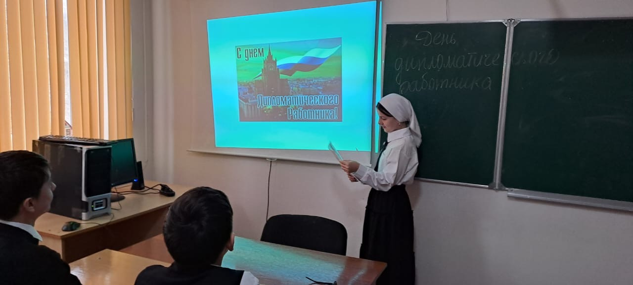 10.02.2025Во взаимодействии с отделом в Ножай-Юртовском районе УФСБ России поЧеченской Республике 10 февраля в честь Дня дипломатического работника собучающимися нашей школы провели мероприятие, посвящённое Днюдипломатического работника.